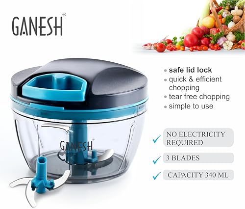 Kitchen Dori Handy Vegetable and Fruit Manual Onion Dry Fruit Salad Maker Vegetable Quick String Chopper Machine, Cutter – 3 Stainless Steel Blades