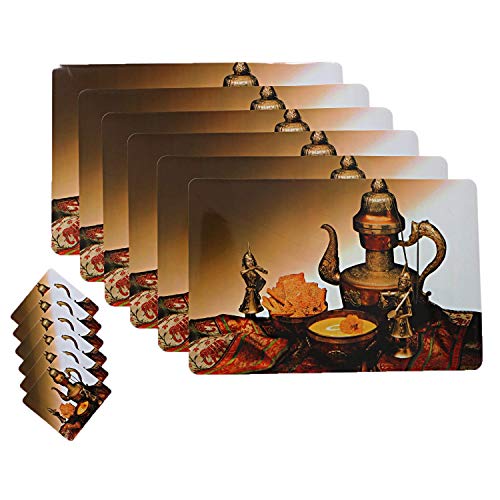 EXCLUSIVE PVC 6 Piece Dining Table Placemat Set with Tea Coasters (Design 1)