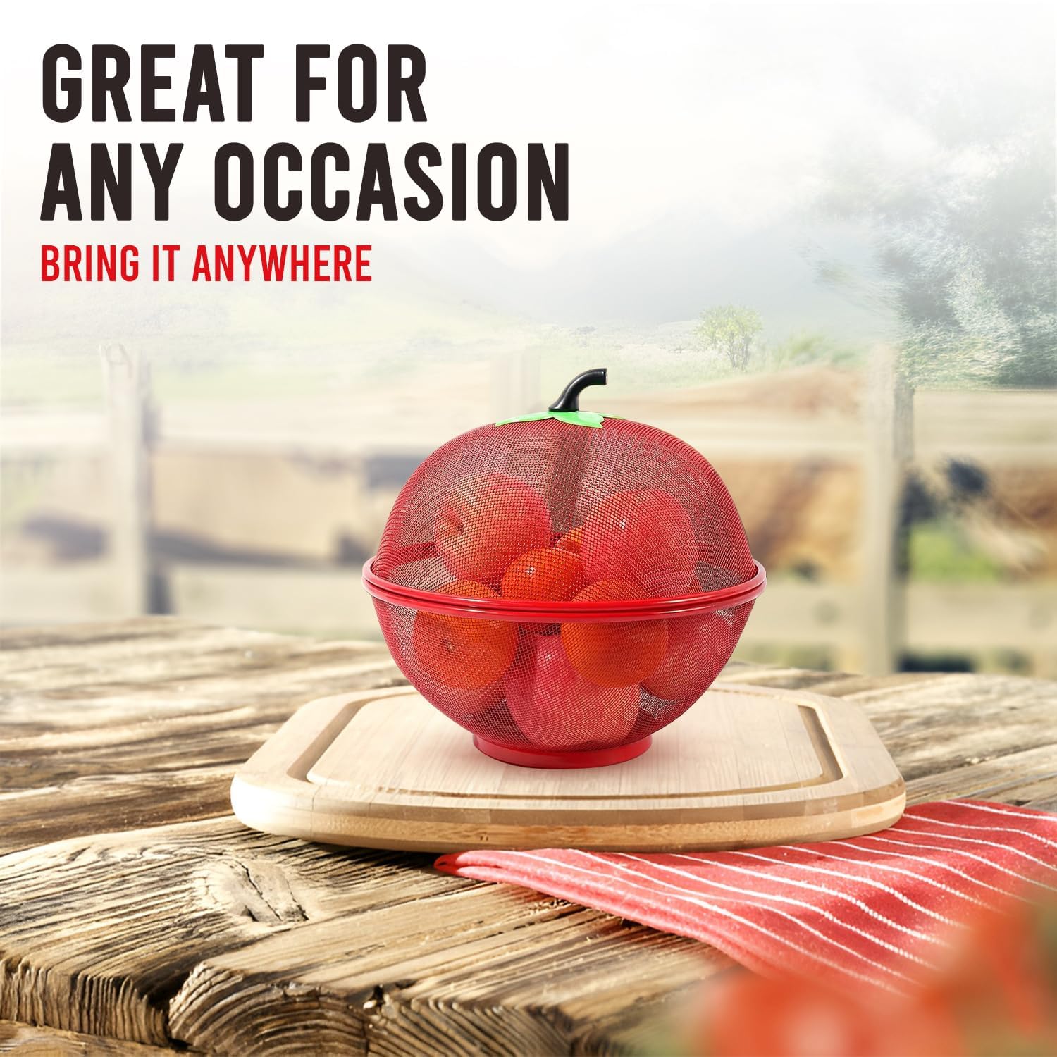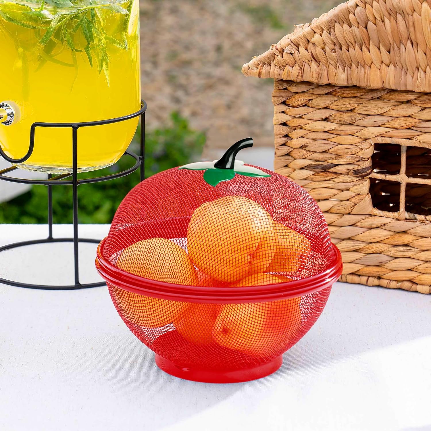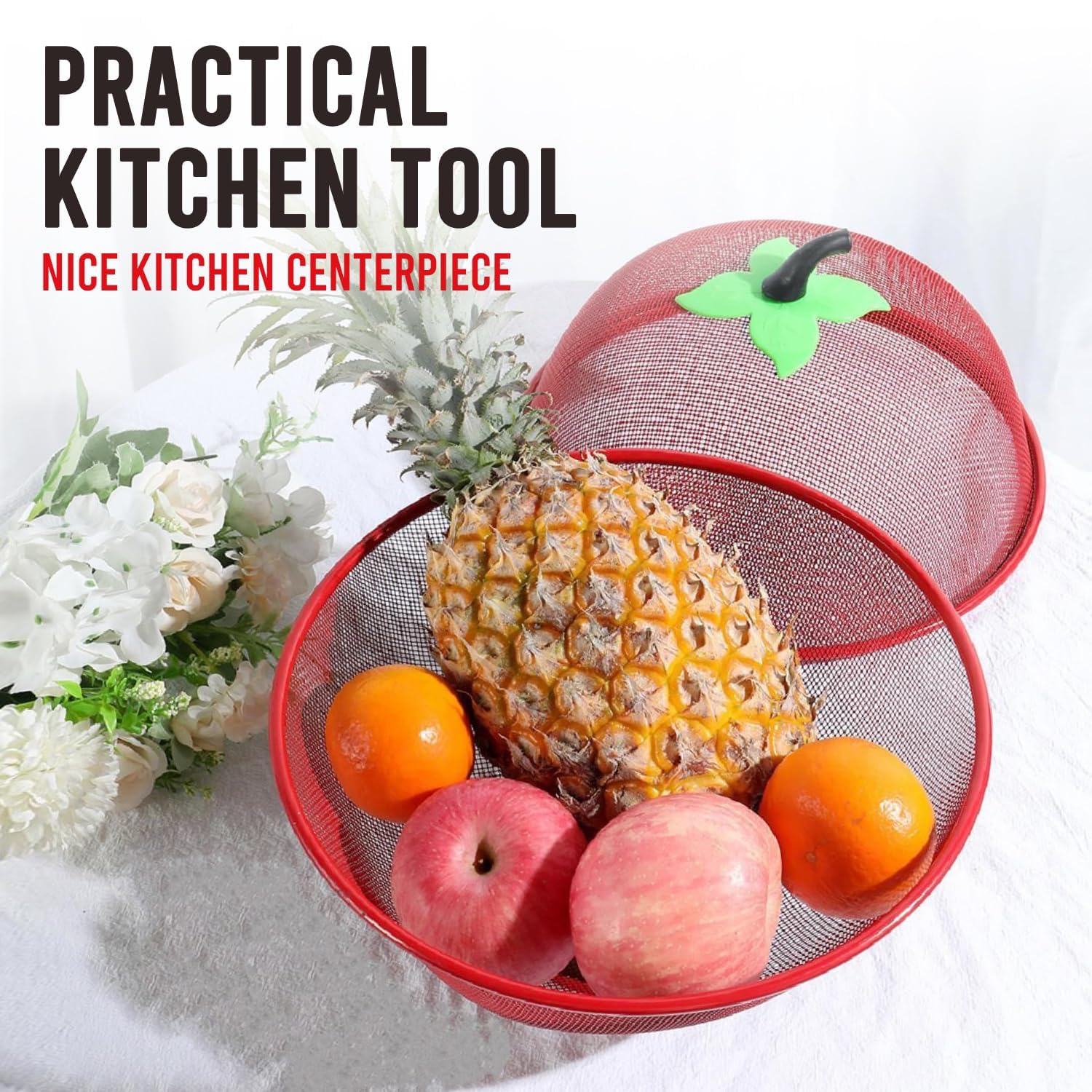 Apple Shape Fruit Basket with Net Cover ? Red Iron Mesh for Kitchen Storage, Fruits & Vegetables, 1L Capacity, Freestanding Iron Accent Shelf